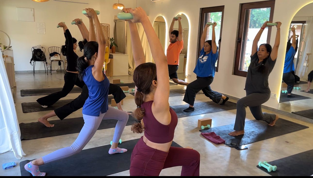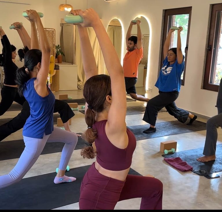 While yoga remains at the core, sessions often draw from other movement practices to build strength, stability, and control, creating a practice that is both grounding and challenging.